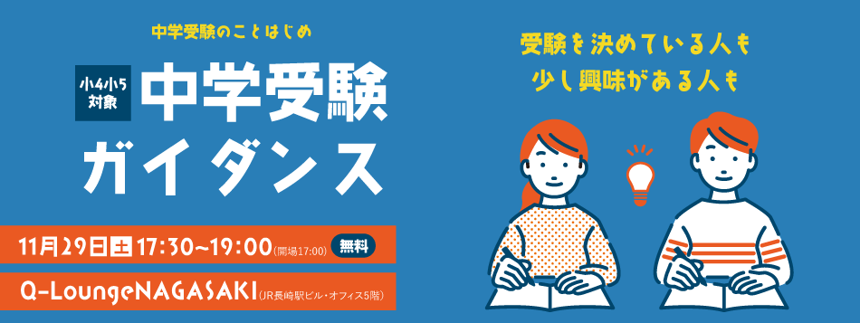 また、長崎東中・長崎大学附属中の特色や、学校側が求める人物像についてもお話しいたします。受験に向けて求められる力や姿勢を知っていただくことで、お子さまの進路選択や学習への意欲を高める一助となれば幸いです。
